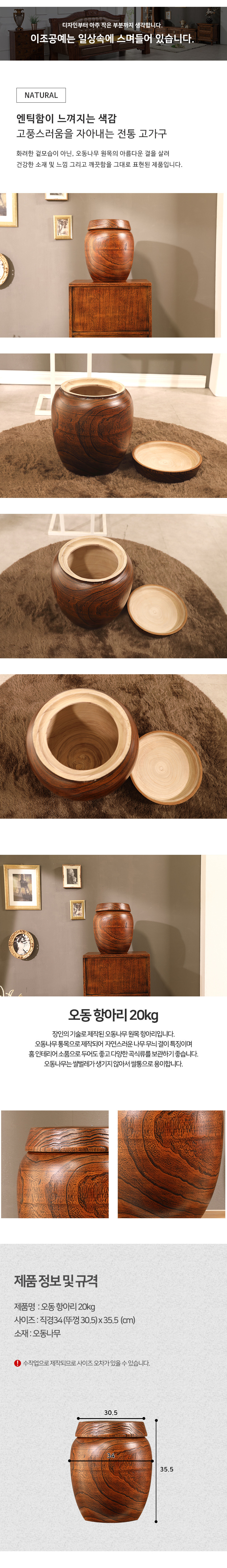 이조공예 오동나무쌀통 원통쌀항아리 10kg