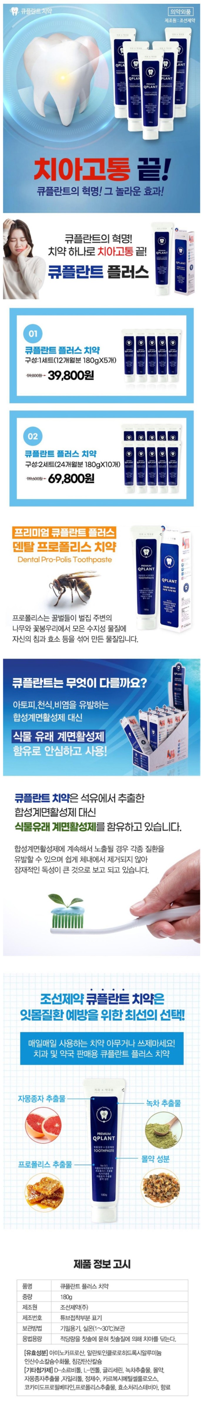 조선제약 큐플란트 치약 잇몸 프로폴리스 치과 약국용 180g