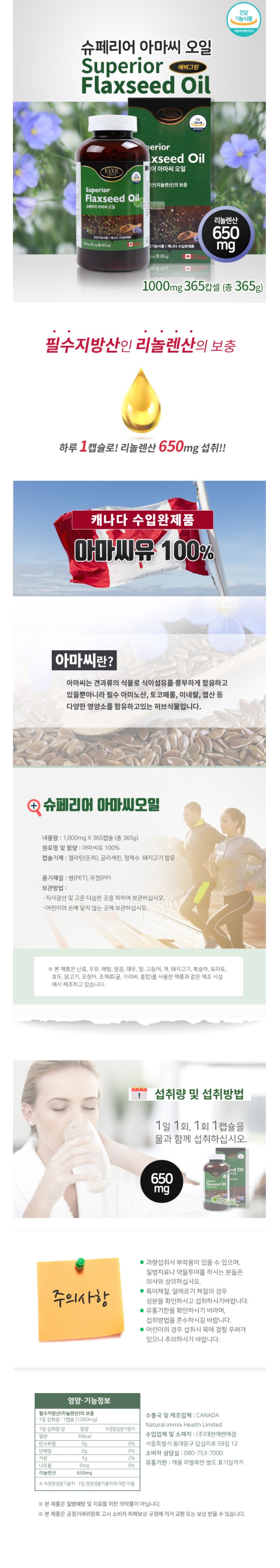 슈페리어 아마씨오일 1000mg 365캡슐 리놀렌산650mg함