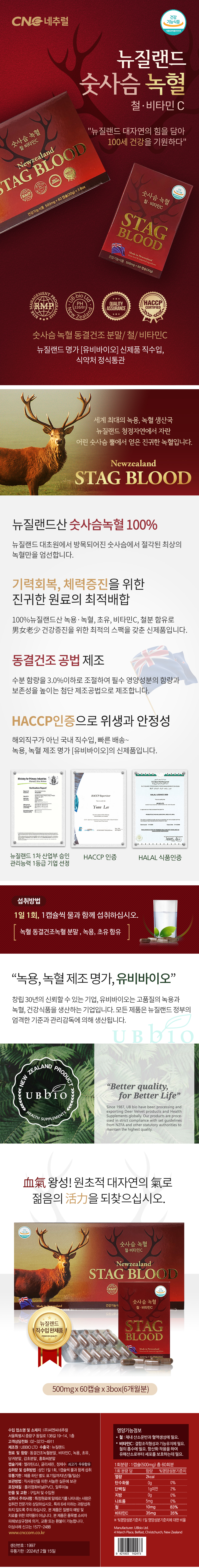 숫사슴 녹혈 뉴질랜드 숫사슴 녹혈 60정X 3박스 180캡슐 6개월분 기력회복+체력증진 건강기능식품 (뉴질랜드산 숫사슴 녹혈+철+비타민C)